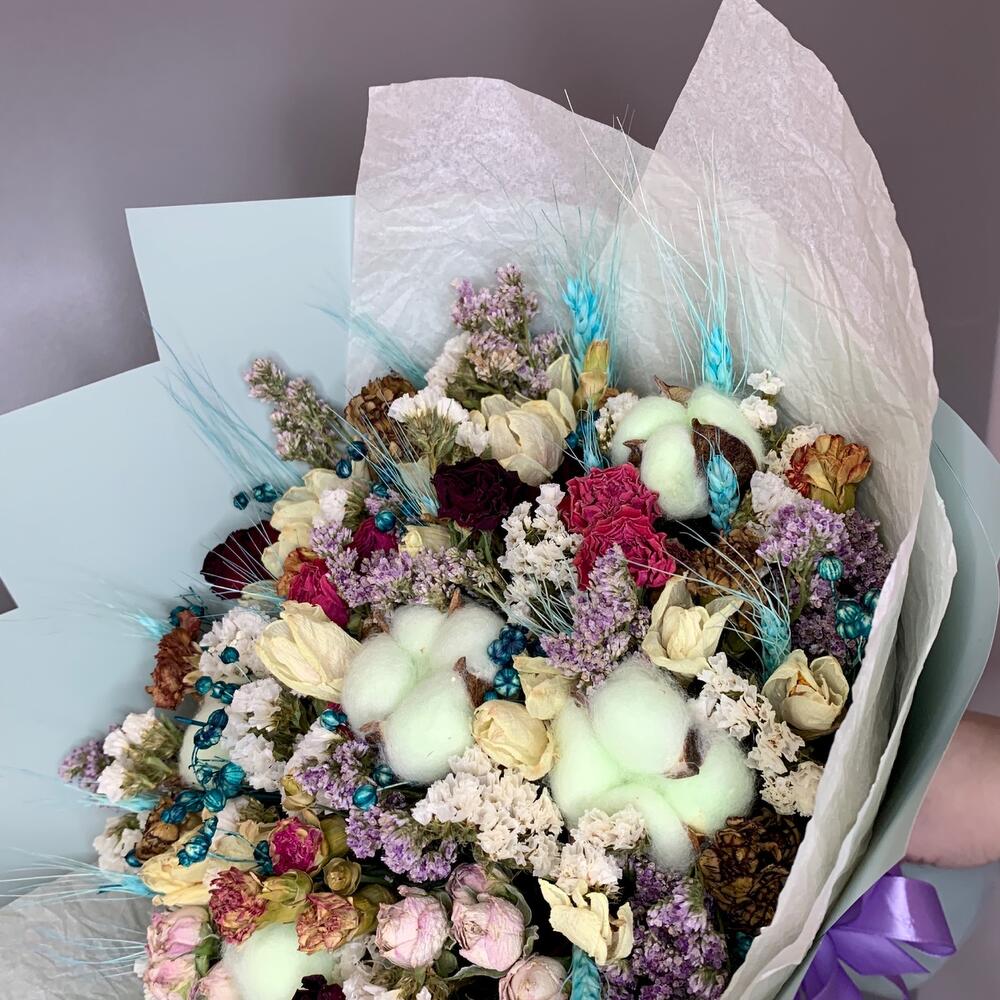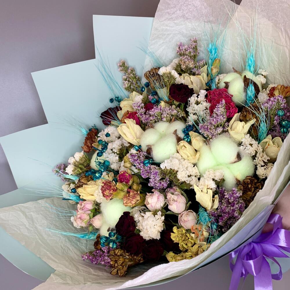 Красочный букет из хлопка и различных сухоцветов