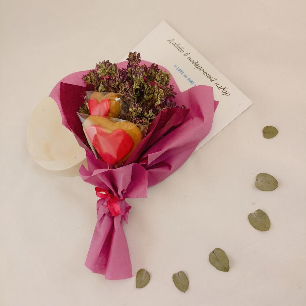 Душица – 1 шт.Пряник имбирный – 2 шт.Розовая упаковка – 1 шт.